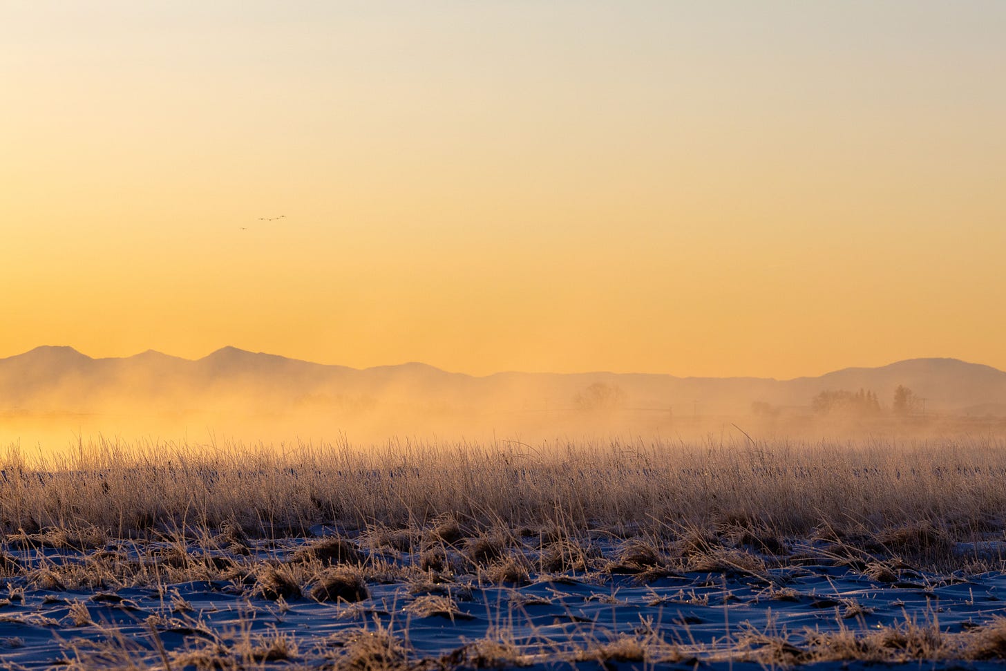 It’s early March, and I’m heading over La Veta Pass in the Sangre De Cristo Mountains towards Monte Vista, a small town in the San Luis Valley of south-central Colorado. The weather’s iffy and temperamental—typical for March. I keep my eye on a swirl of dark clouds up ahead. As the road climbs and bends, sleet whips across the windshield. The pavement is wet, though not yet slick. Snow covers the rising, rolling terrain ahead.